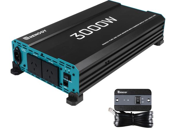 For high-demand in-vehicle power setups, the Renogy 3000W pure sine wave inverter delivers substantial AC capacity directly from your 12v battery system. Perfect for powering larger power tools, multiple appliances or heavy electrical loads while on the move or at base camp. Its clean sine wave output keeps sensitive electronics running smoothly.